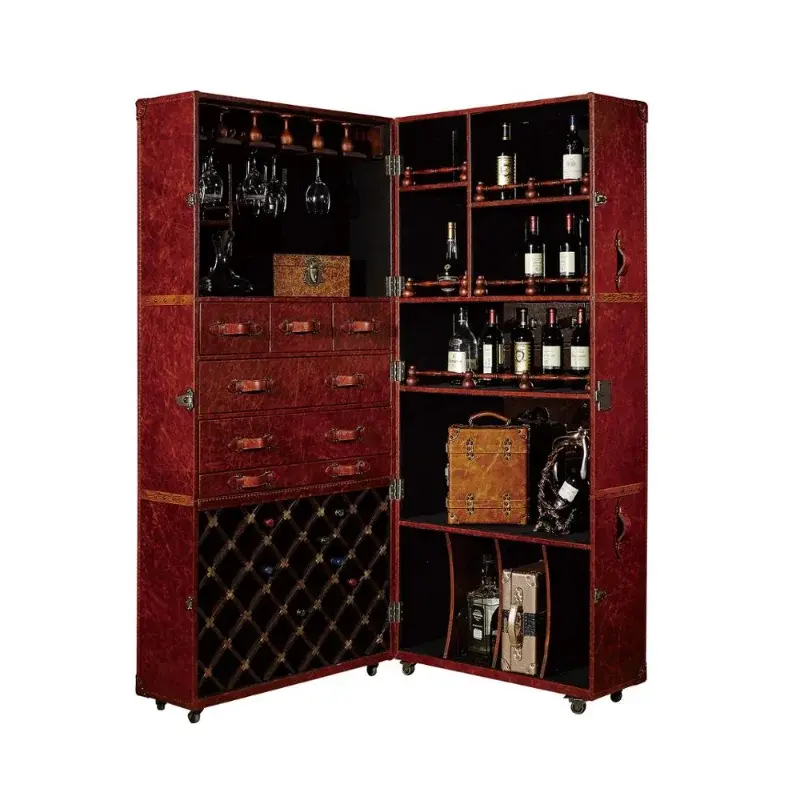 Custom Antique Style Solid Wood Home Bar Trunk Cabinet Leather Wine Cabinet