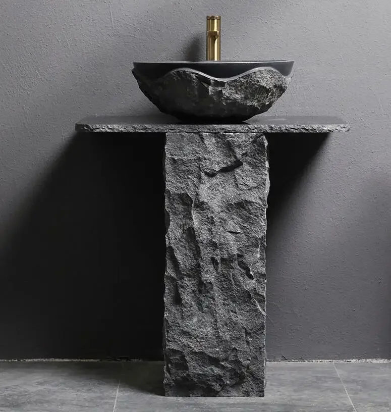 Black Granite Pedestal Sink, Bathroom Stone Sink, Matching Taps and Downcomers