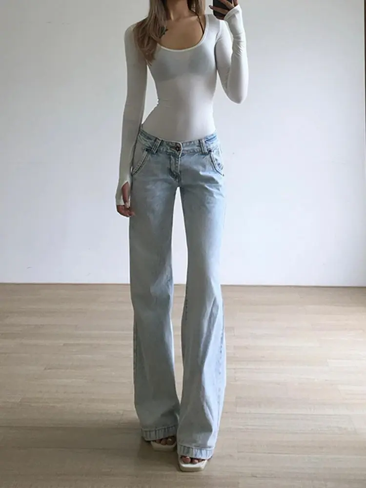 Low Waist Jeans Women Streetwear Vintage Trousers Harajuku American Style Chic